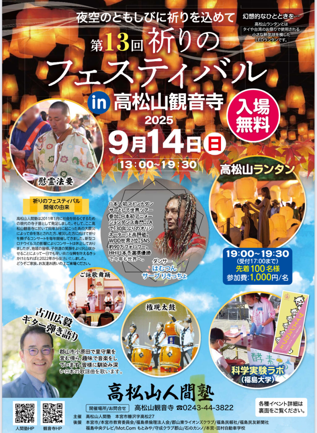 高松山人間塾が主催するこのフェスティバルは、祈りと芸術、そして人と人とのつながりを大切にする場です。