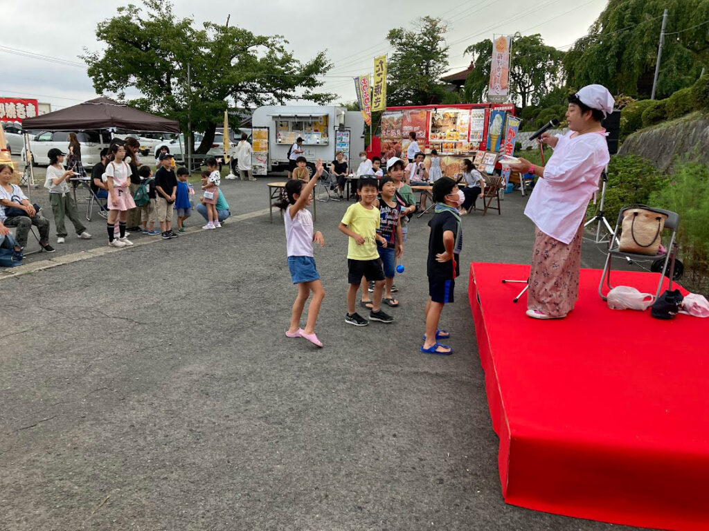 焼きそばやかき氷などの露店、子ども縁日やキッズコーナーも充実。家族みんなで楽しめる空間です。