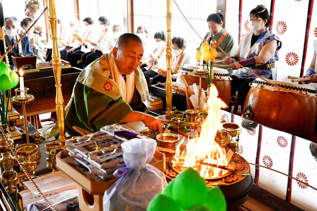 護摩祈祷とは、護摩木を焚き上げ、仏さまの智慧の炎を通じて願いを祈る特別なご祈祷です。